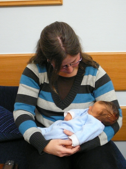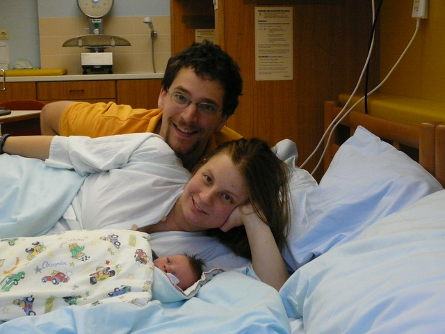Angefangen hat alles damit dass ich meine Cousine Chris und ihre zwei Monate alte Tochter Sophie besucht habe.Sophie hatte ich vorher noch nicht gesehen, sie war voll suess :-) . Wahrscheinlich haben in diesem Moment die Hormone zugeschlagen. Blasensprung! Ich bin von Christinas Couch herunter gehechtet (soweit das in diesem Zustand noch moeglich ist) und hab mich in Seitenlage begeben. Chris hat die Rettung gerufen und bewundernstwert sachlich geschildert was vorgefallen ist. Danach folgte eine Fahrt mit der Rettung ins Krankenhaus Tulln.